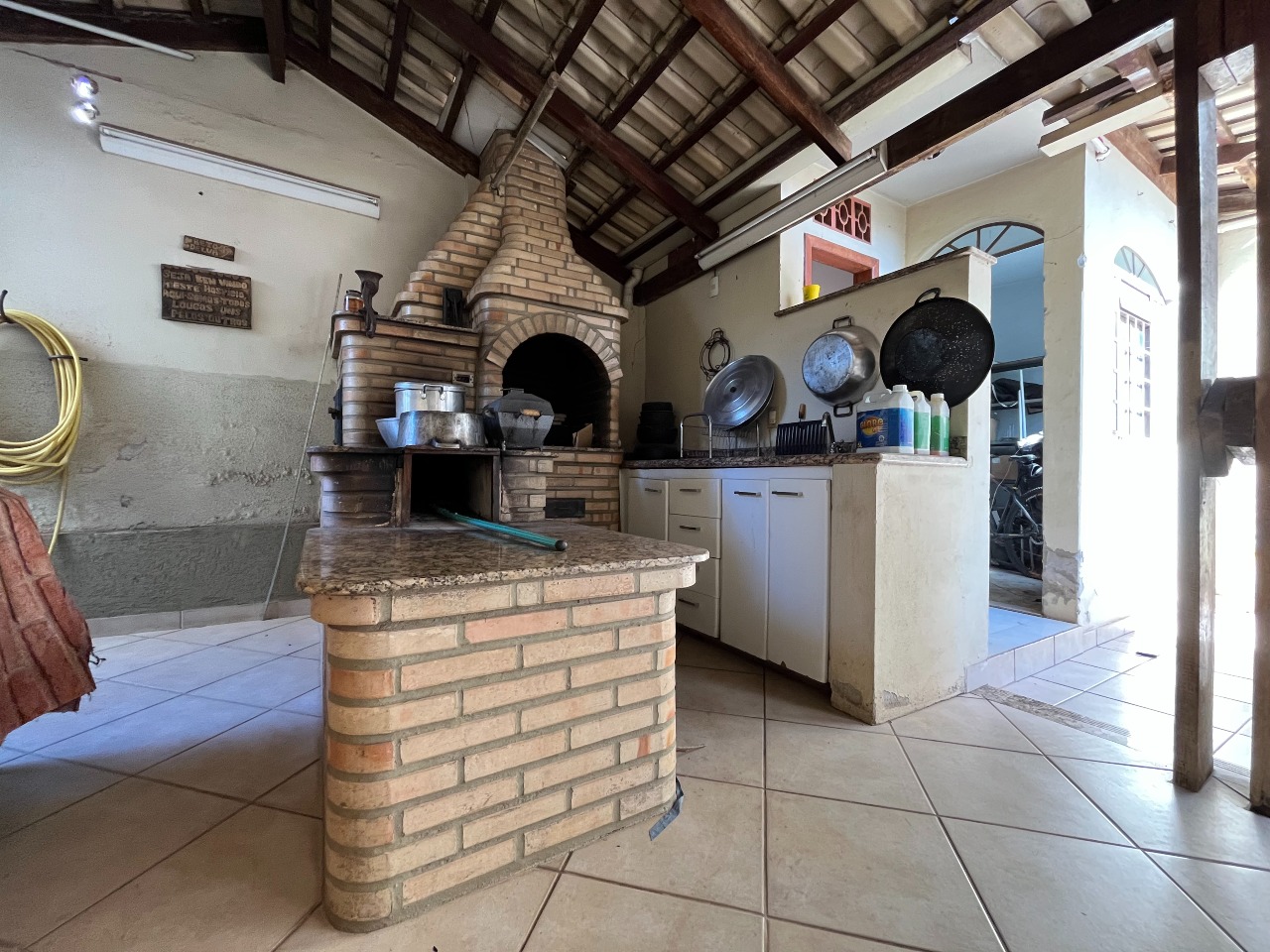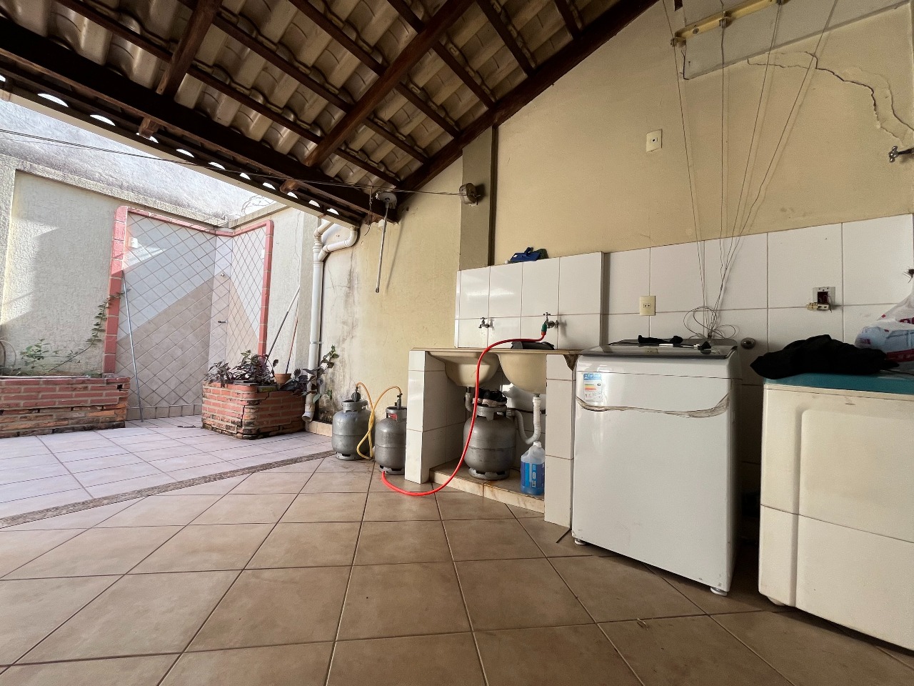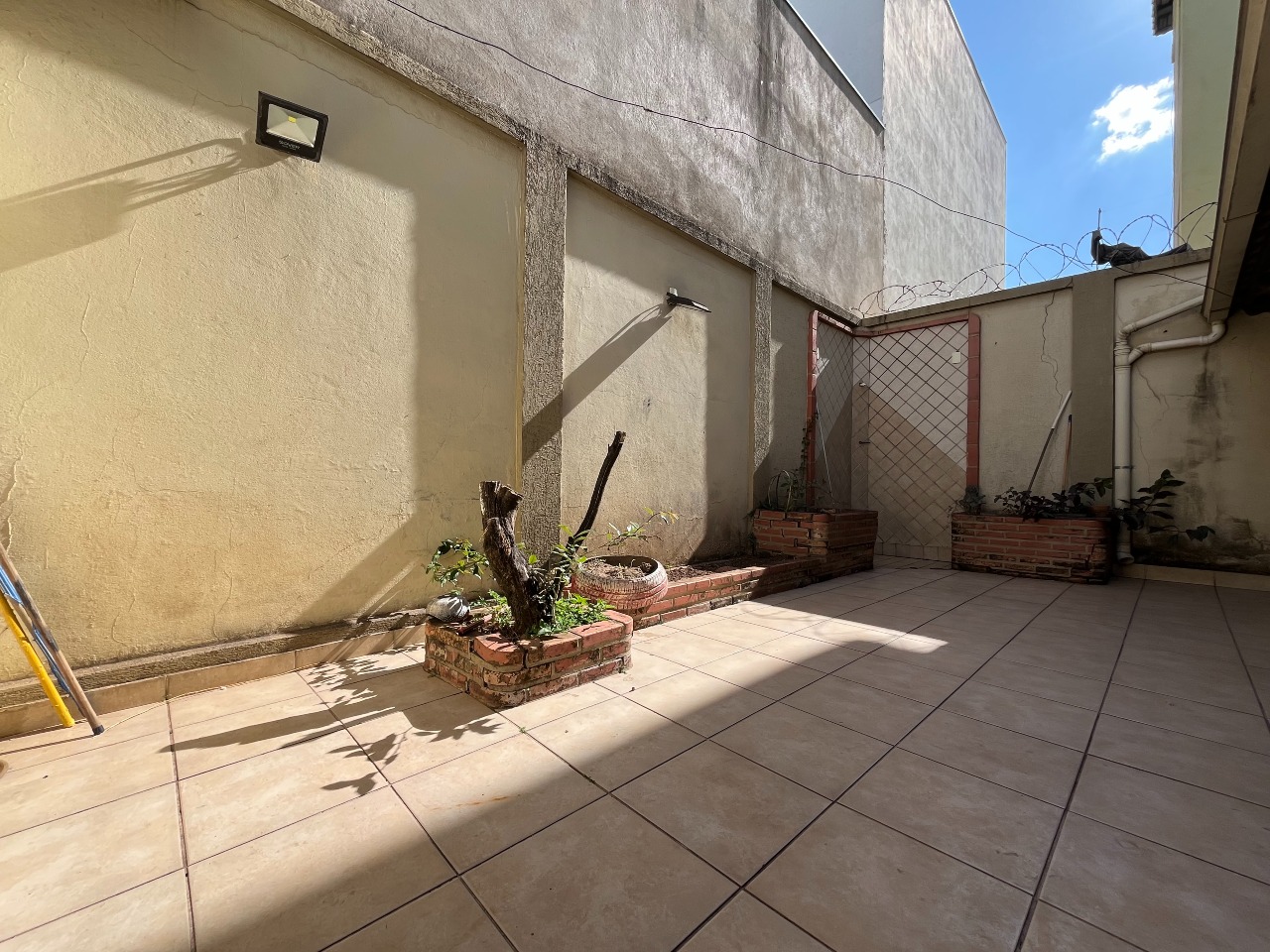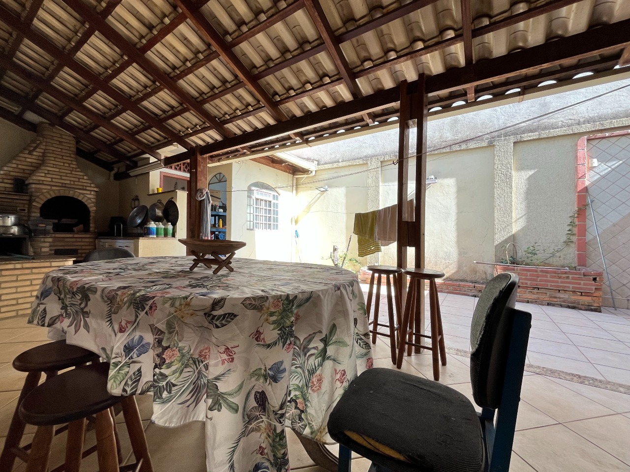 A residência conta com um quintal e uma área gourmet, ideal para momentos de lazer. A entrada de luz natural é garantida por uma área de claridade.